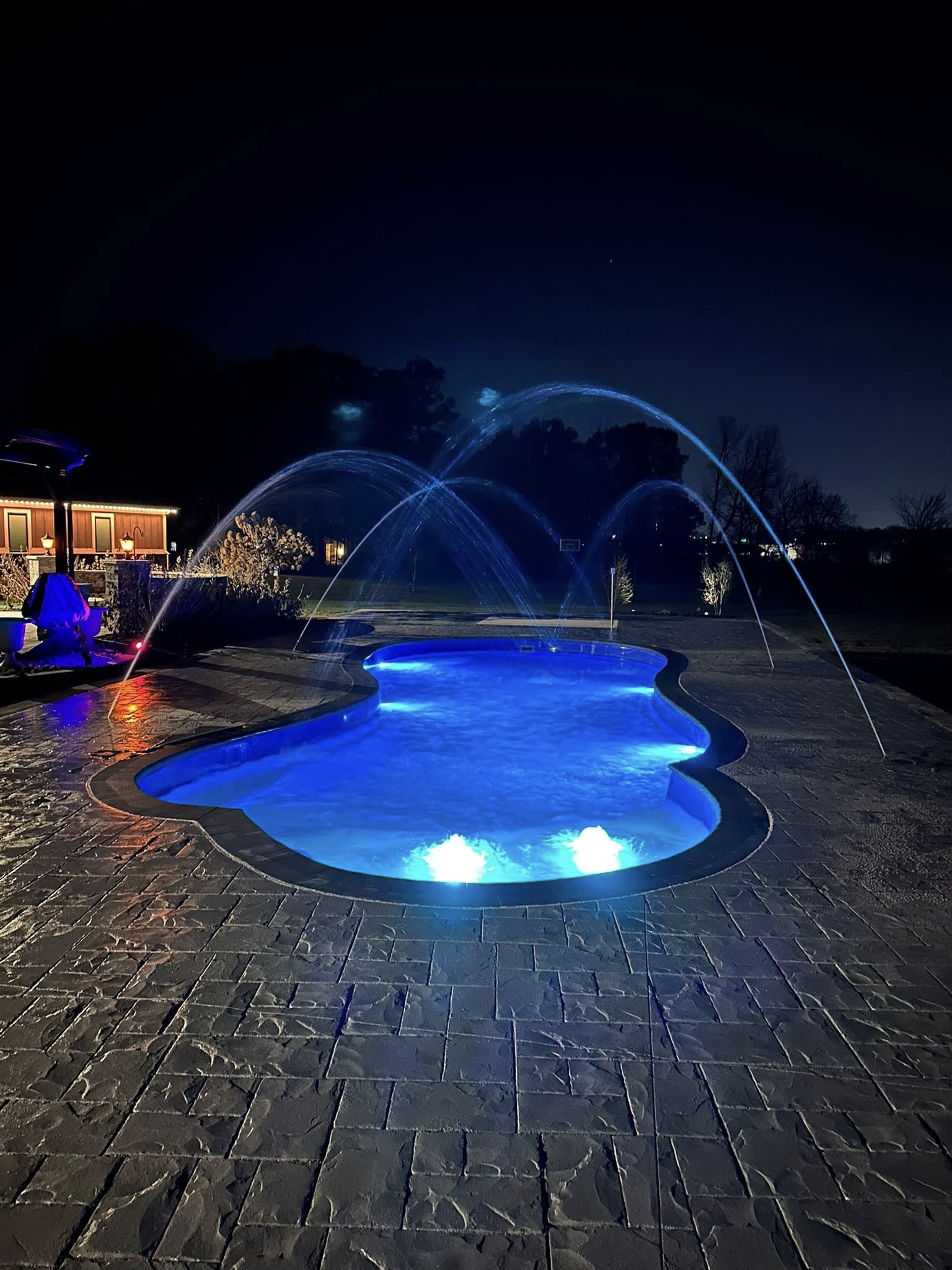 Options for spas, ledges, waterfalls, lighting, fire features, decking, and outdoor kitchens